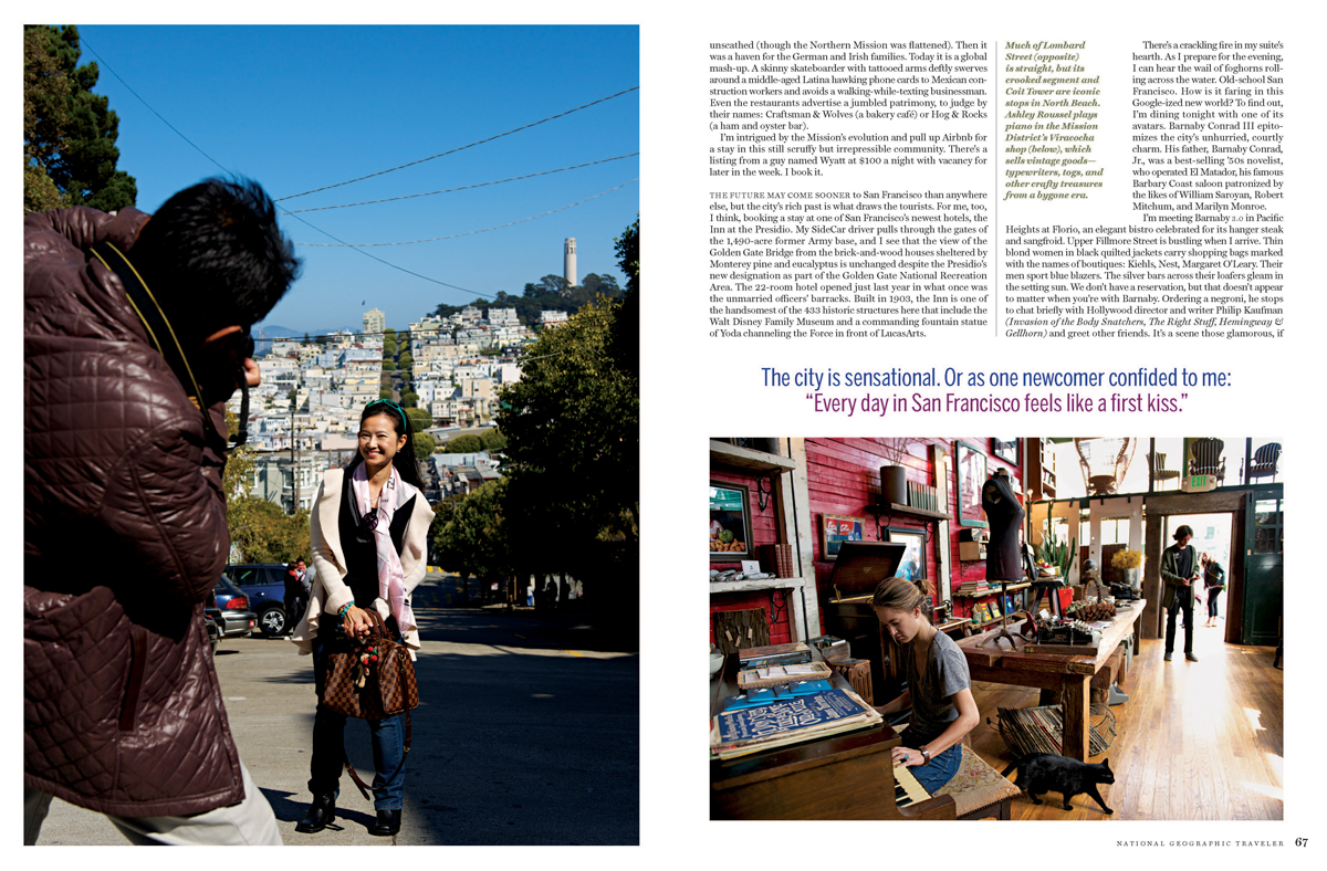 In September of last year I was given the opportunity to photograph a feature story for National Geographic Traveler magazine. I was thrilled to get out from behind the photo editing desk and head back to my native West Coast to explore San Francisco with camera in hand. Half a year later, the results of that assignment are hitting newsstands today.
