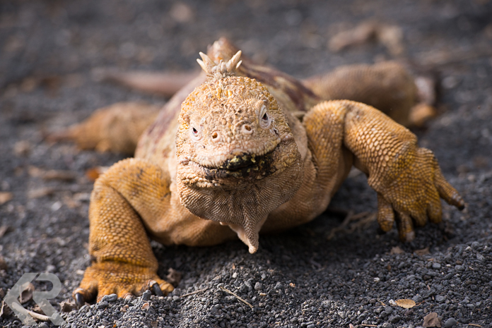 Sometimes getting low means getting dirty. I saw this Galápagos land iguana (pictured above) on the move and got onto my belly in front of him using my telephoto lens. I then snapped away hoping that I’d catch his hand in a gesture that would show he was walking. By getting so low, I cropped out the distracting brush that was in the background and made this photo all about the animal.