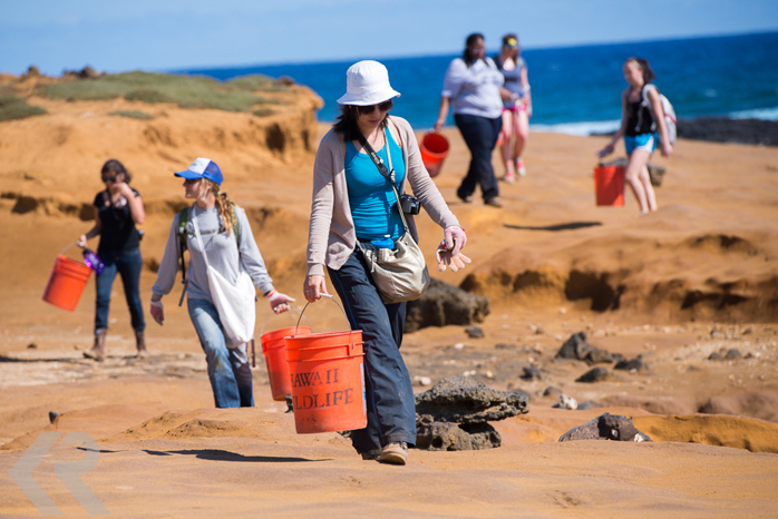 A telephoto lens is useful for compressing space and isolating an individual like in this image taken at 200mm in Hawaii during a beach clean-up during my voyage with Semester at Sea.