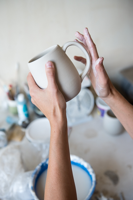 Laura Cooke of Cooke Ceramics at work on her porcelain ceramic pieces in her studio space at Clayspace. The Clayspace Co-op is a cooperative of professional ceramic artists located at the Wedge Studios at 119 Roberts Street in the River Arts District of Asheville, North Carolina.