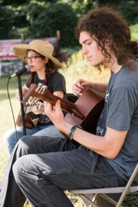 Musicians Kayla Zuskin and Stephen Horvath play together as Fort in the Sky during the weekly River Arts District Farmers Market, which is held Wednesdays at 175 Clingman Avenue (next to All Souls Pizza) in the River Arts District of Asheville, North Carolina.